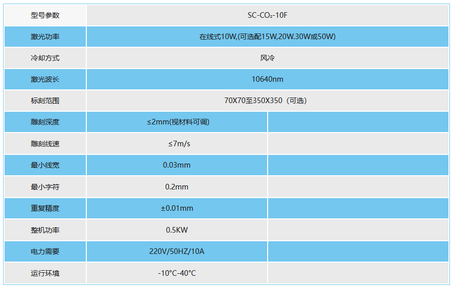 SC-F-CO2 10W風冷機型,主要用于非金屬包裝的字符在線標記。
